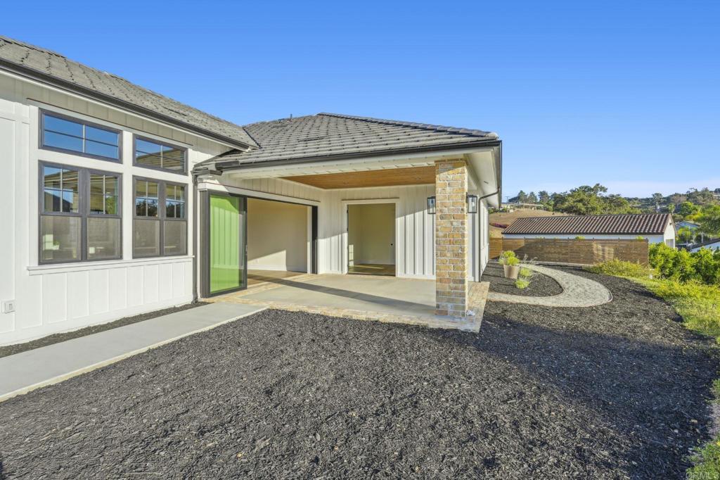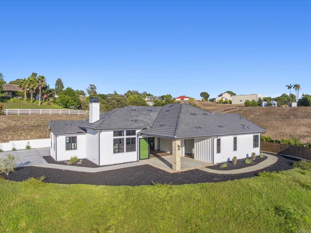Brand new custom one level home located in the coveted Morro Hills area of Fallbrook. Volume ceilings with crown molding, cantina disappearing doors to covered brick laced patio, high end brushed bronze fixtures, quartzite counters and many designer touches. Top quality built in custom cabinetry throughout the home. Fully fenced parcel and room for RV or boat parking. Zoned for horses, chickens and any 4-h projects you may want. Enjoy the dramatic sunset vistas setting over the treetops and the cooling ocean breeze from your large covered patio adjoining the great room and primary bedroom suite. With uncompromising quality you will notice upon entering this special home, you will not want to miss this opportunity. Plan your private tour today!